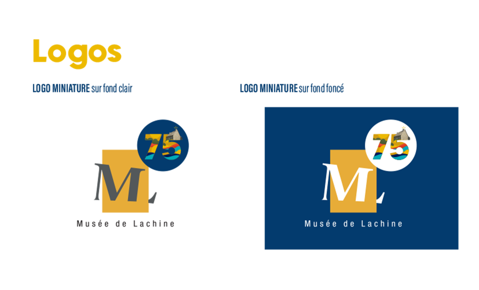 Le logotype du musée était préexistant. Il devait être conservé dans la nouvelle identité visuelle. Une pastille pour souligner les 75 ans a été ajoutée à celui-ci pour l’occasion.